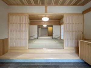 玄関から土縁を進むと二間続きの和室が迎えます。